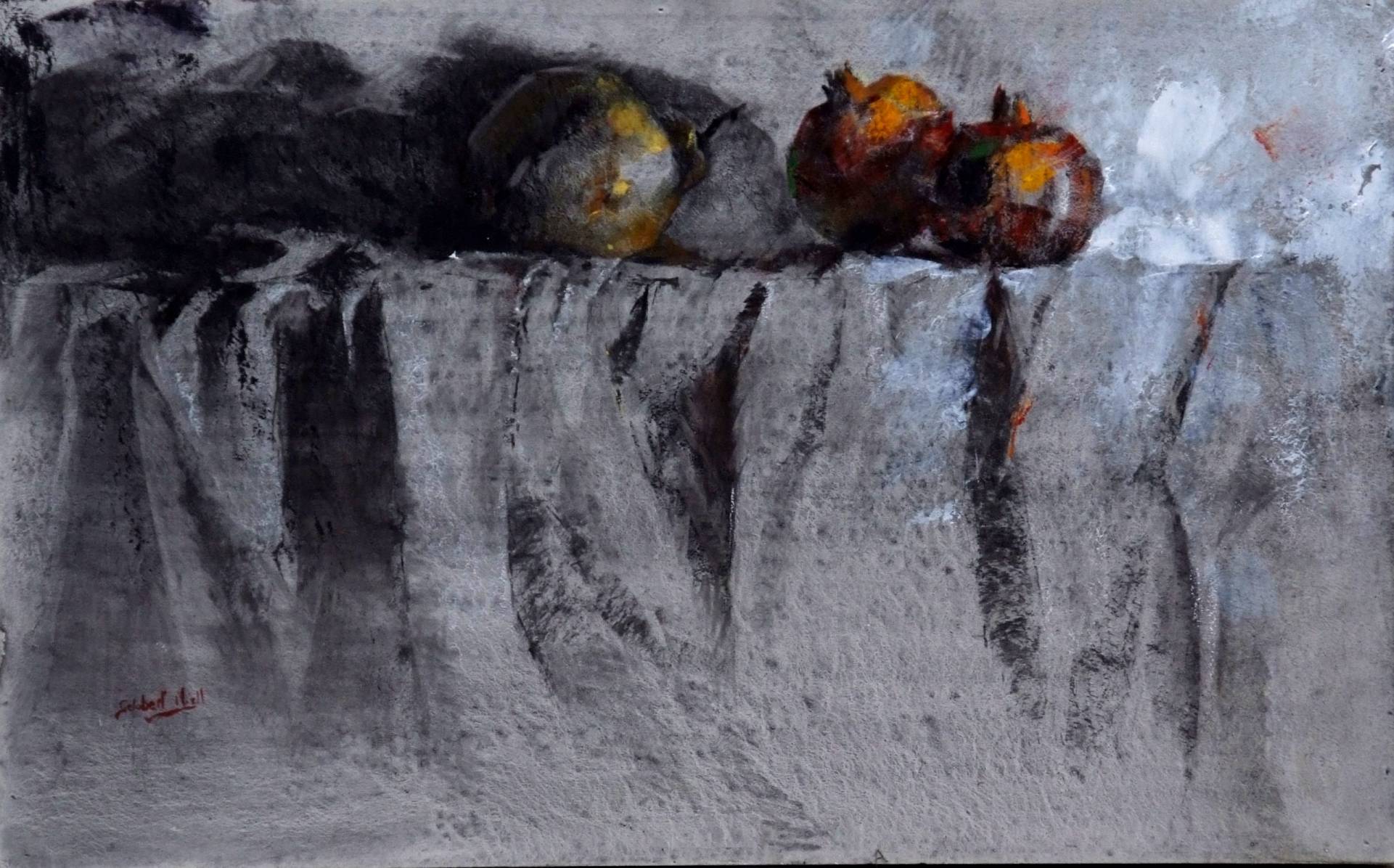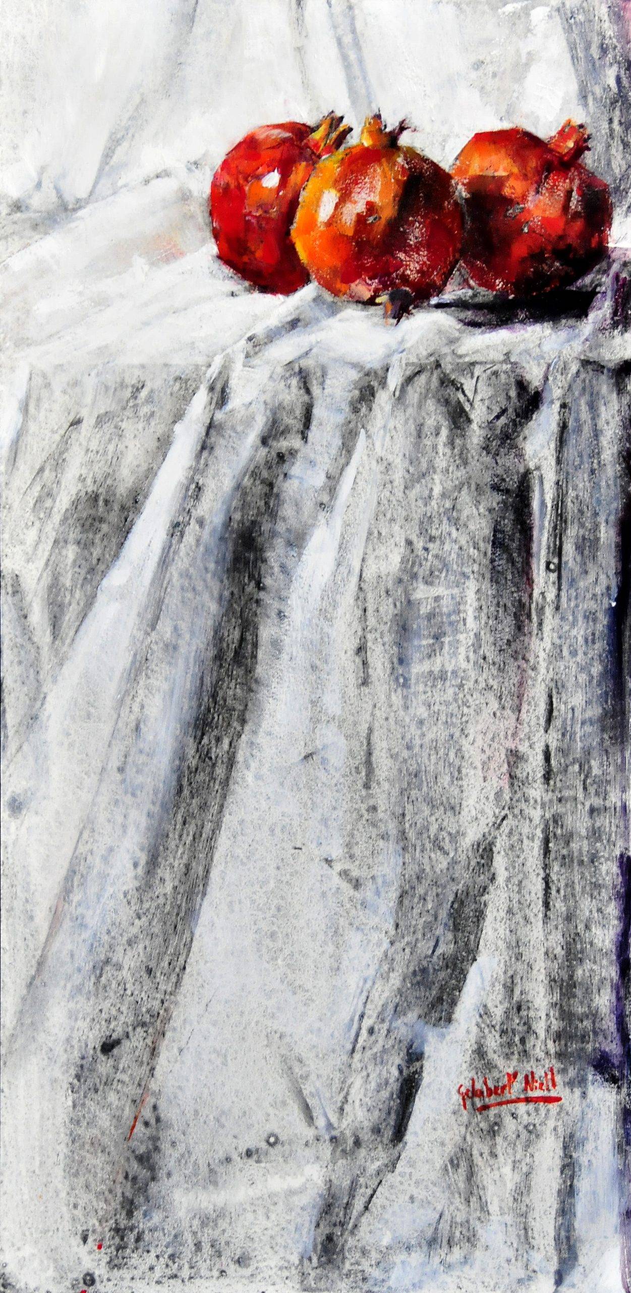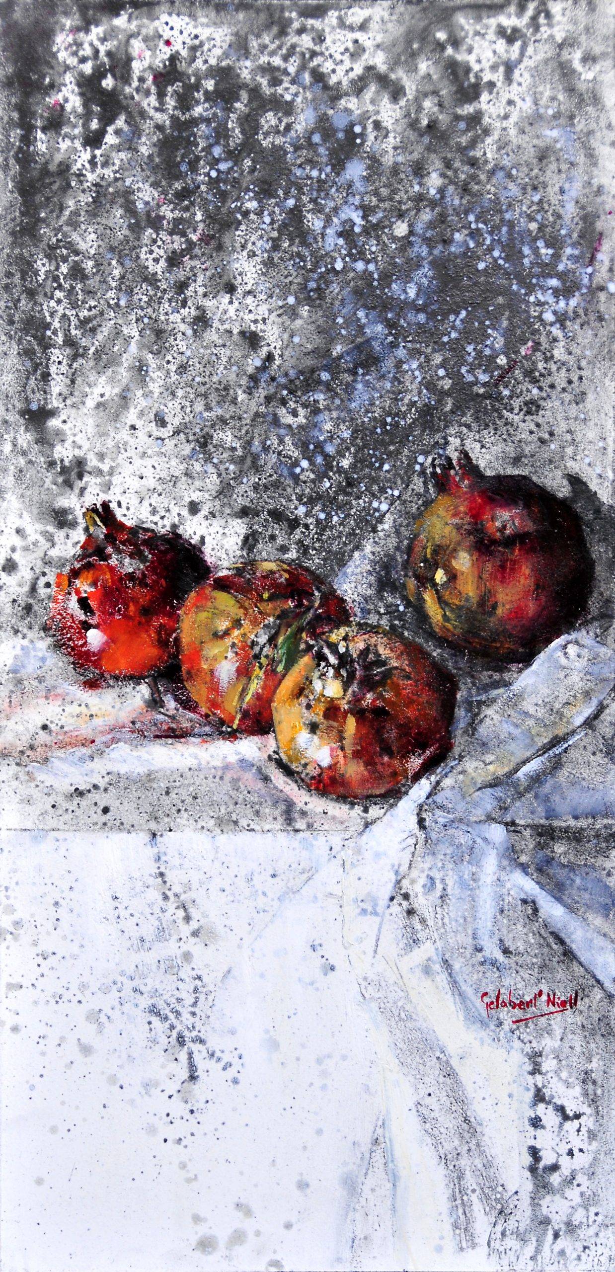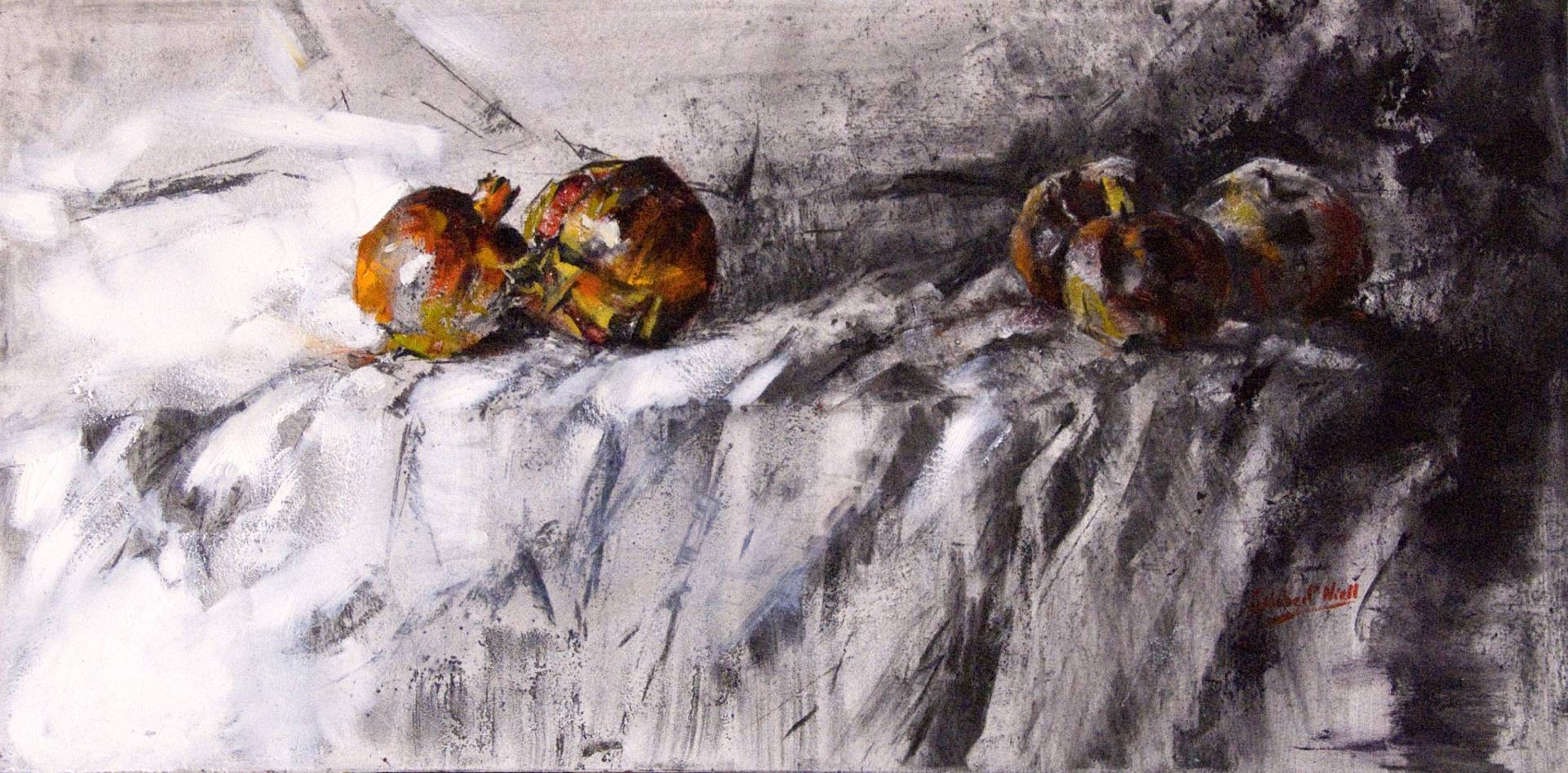 Granadas VI,Oleo y grafito sobre tabla,66x33cm