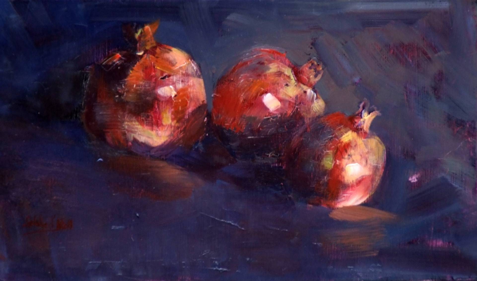 Granadas II.Óleo y grafito sobre tabla. 55X27 cm