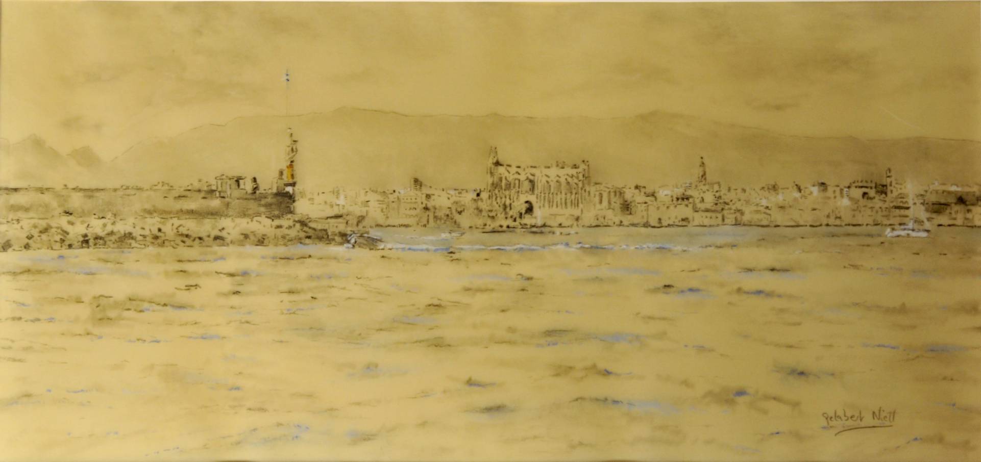 Bahia de Palma II,tecnica mixta sobre papel,36x17.5cm