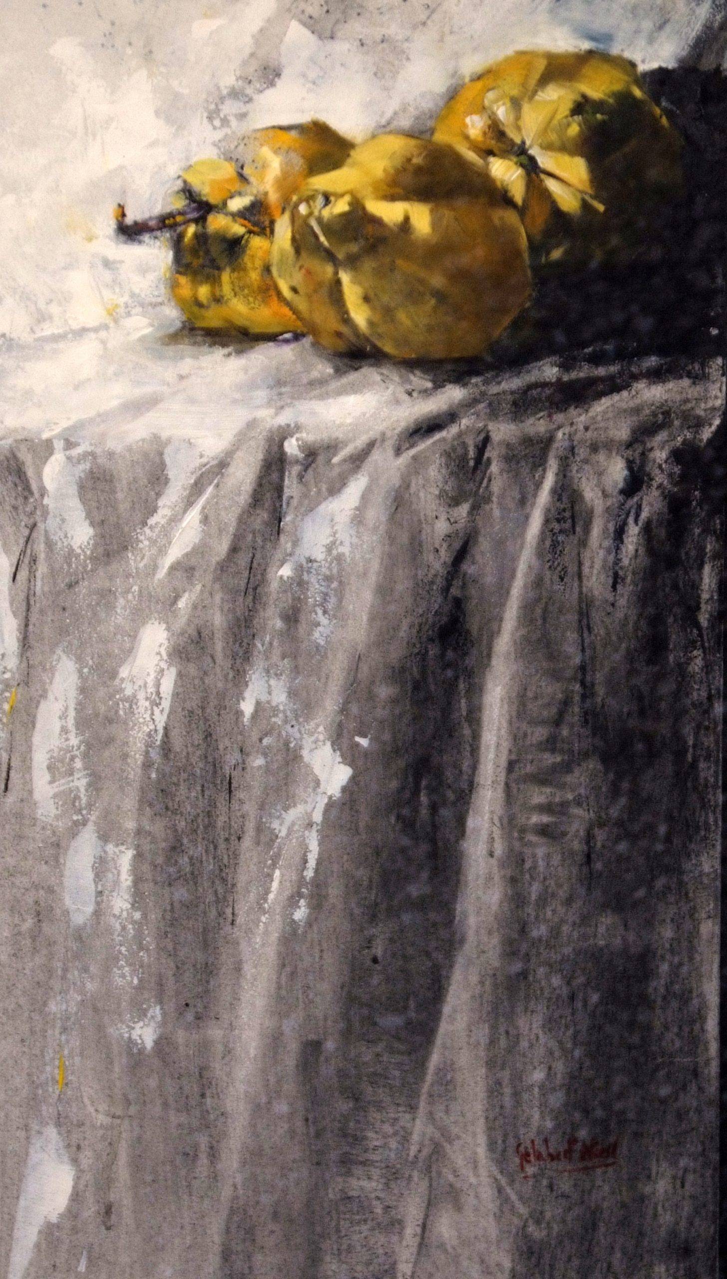 Membrillos,Oleo y grafito sobre tabla,55x27cm