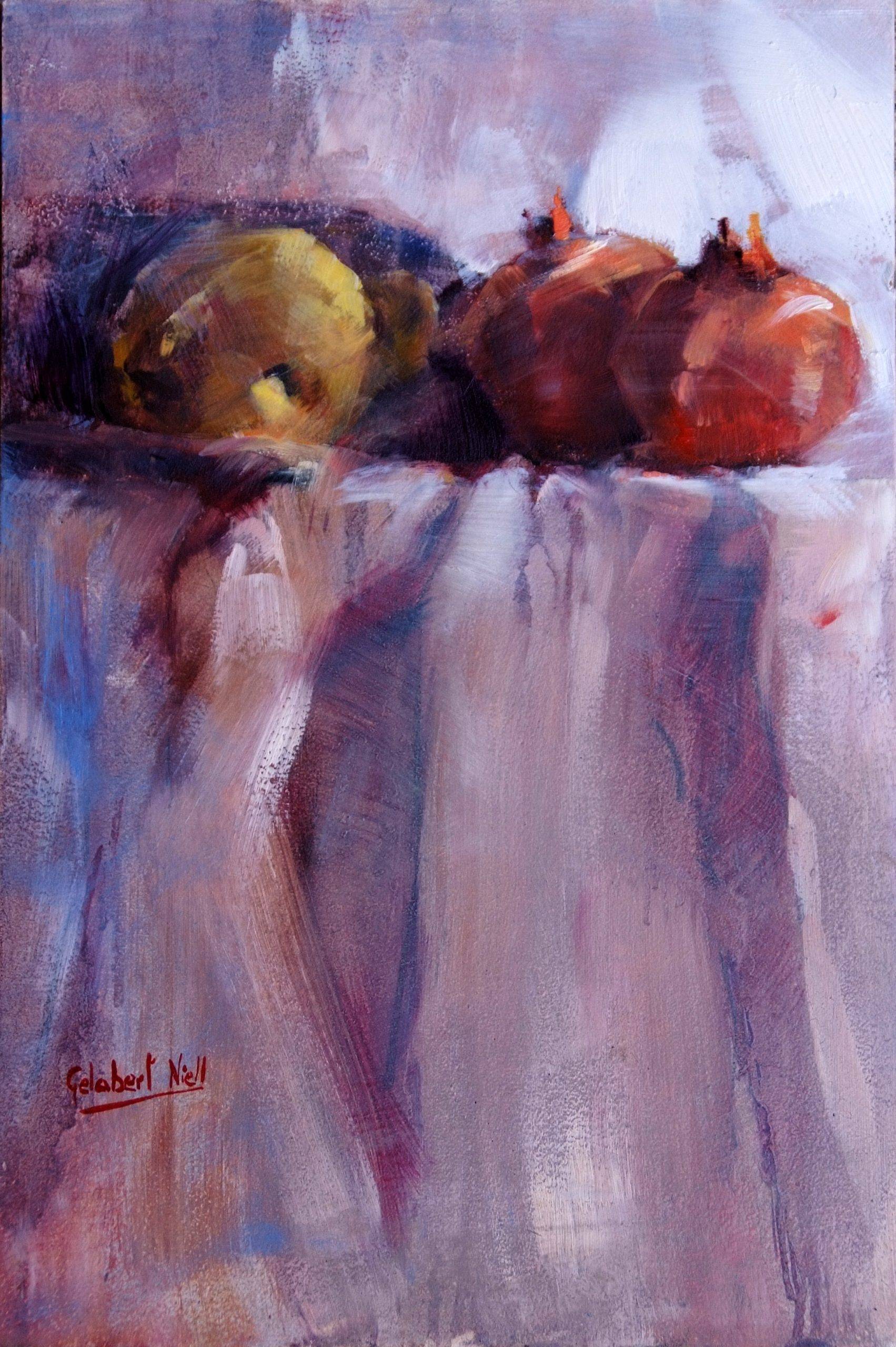 Granadas y membrillos II,Oleo y grafito sobre tabla,66x33cm