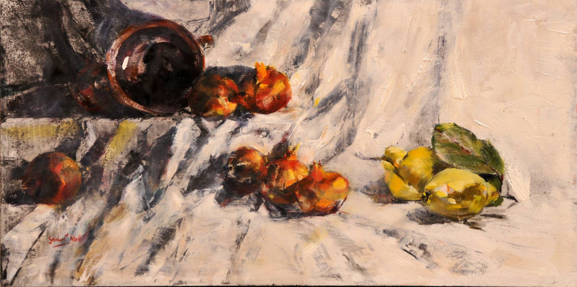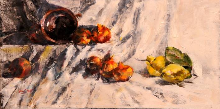 Granadas y membrillos-Oleo y grafito sobre tabla 66x33