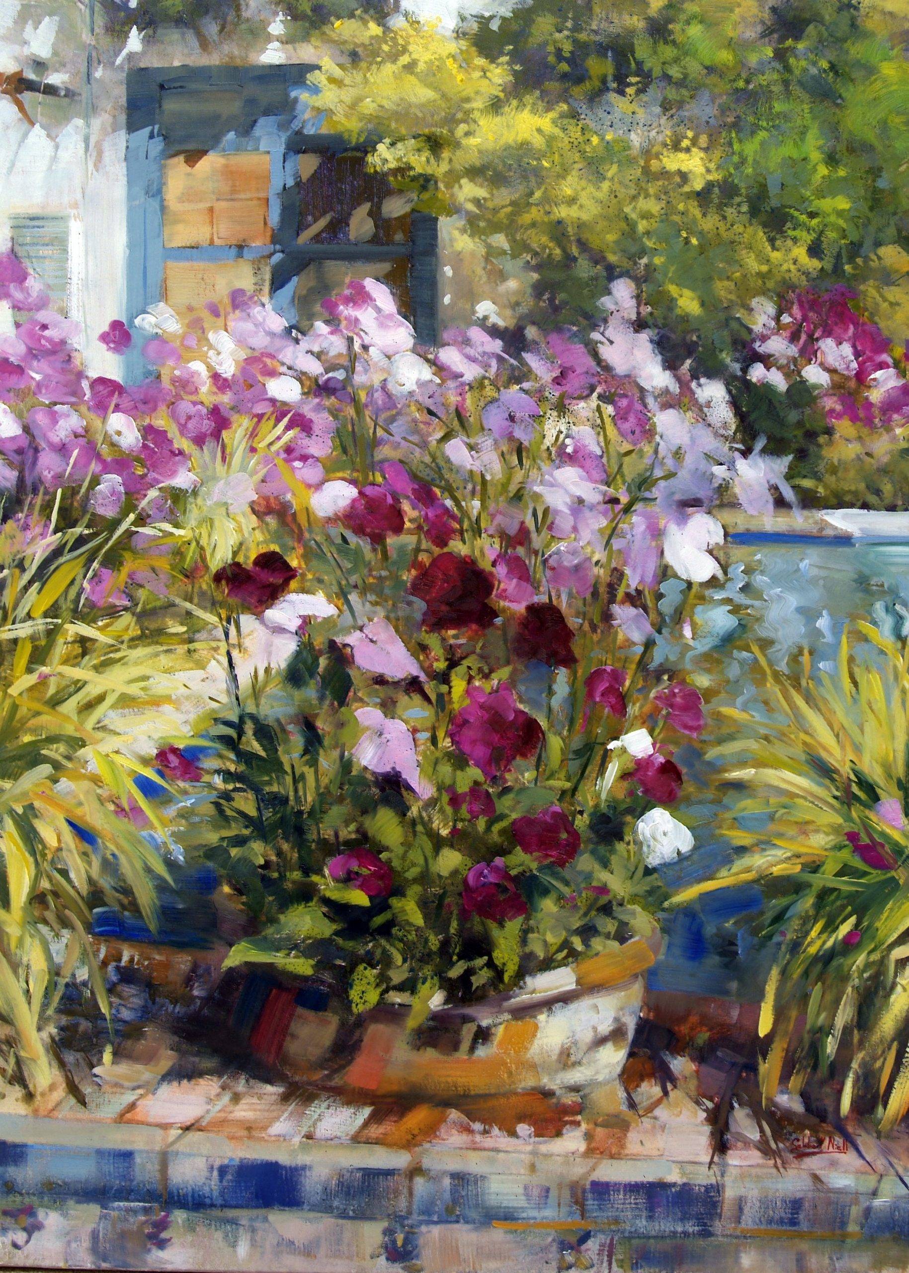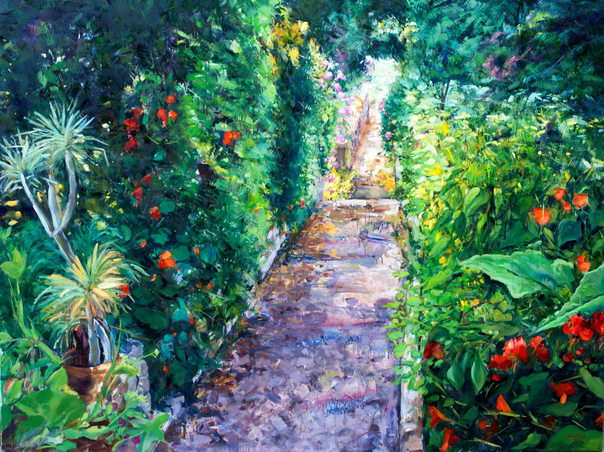 JARDÍN , MALLORCA.ÓLEO SOBRE TELA 139X97 CM
