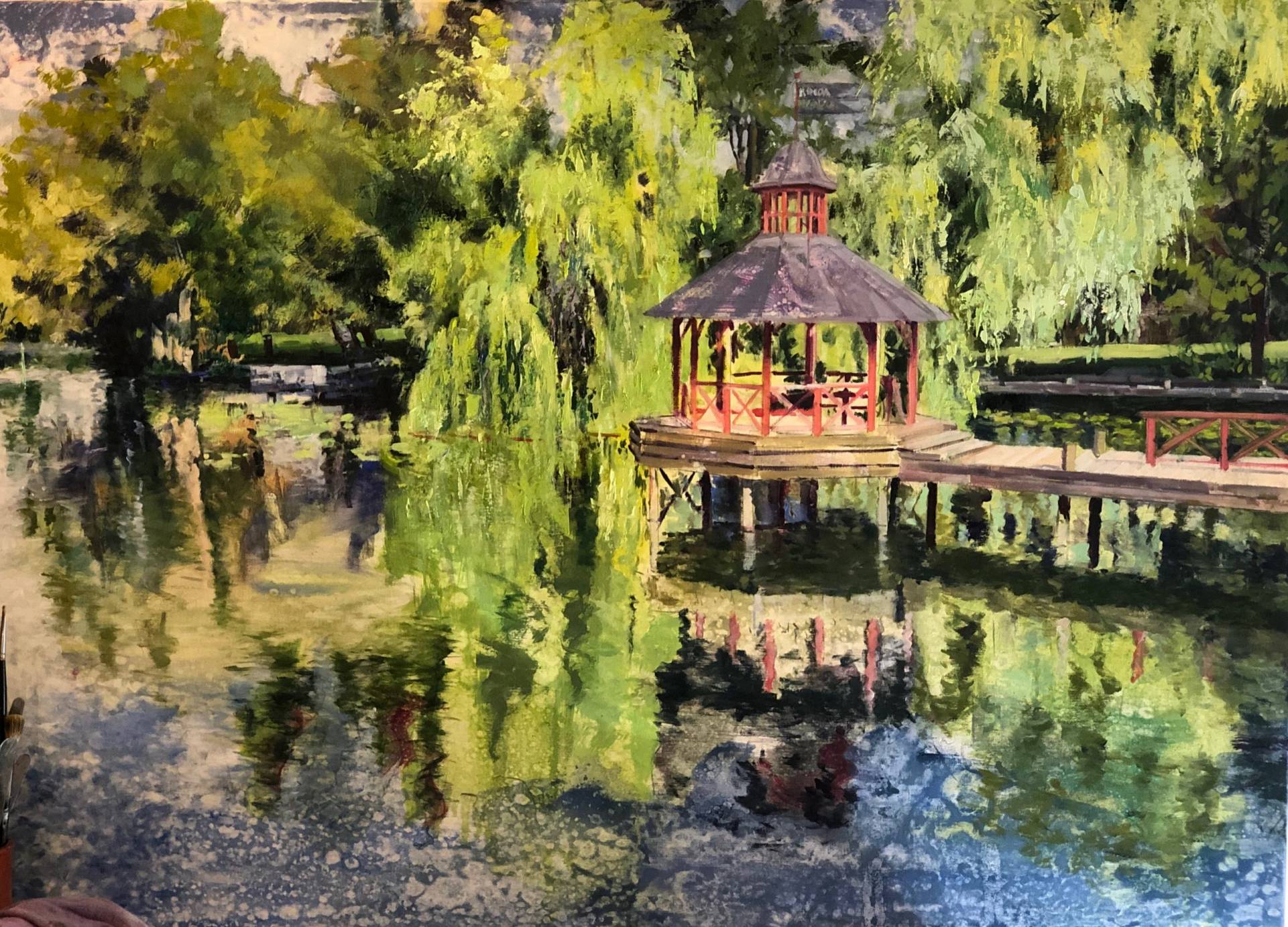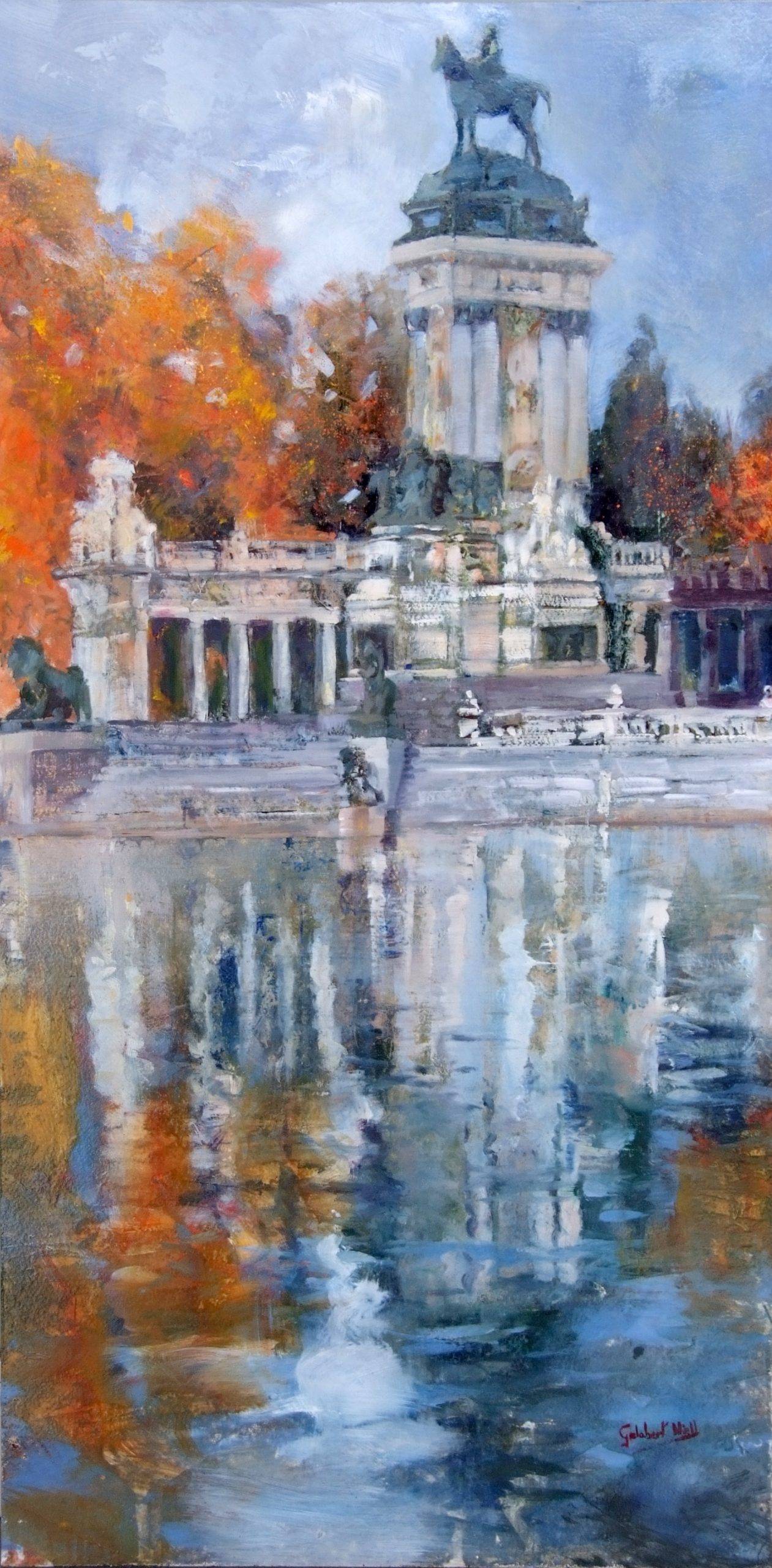 Estanque de El Retiro(Madrid),Oleo sobre tabla,66x33cm
